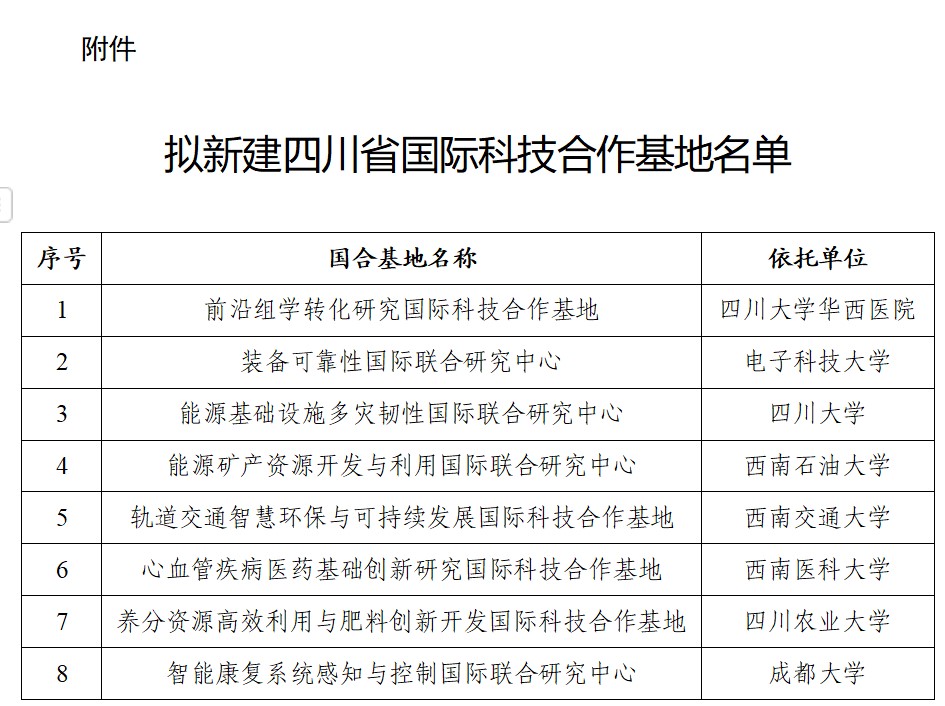 四川省科學技術廳關于擬新建四川省國際科技合作基地的公示