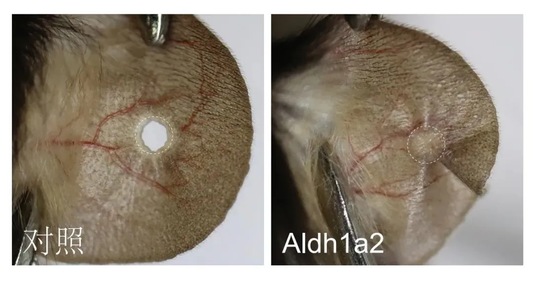 在小鼠中表達視黃酸關鍵合成酶Aldh1a2可以完全恢復耳廓再生能力
