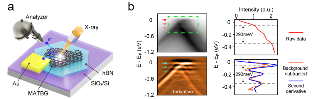 圖1 a.Nano-ARPES測量魔角石墨烯器件示意圖;
